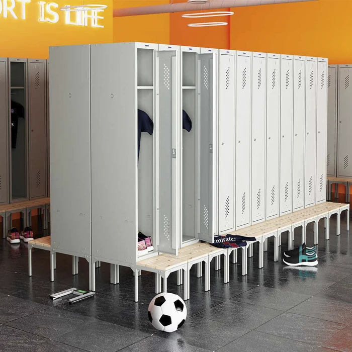 - Модульность: благодаря общей боковой стенке и специальным крепежным элементам, шкафы можно легко собирать в ряд, создавая систему хранения без ограничений по количеству модулей. (Модуль из локеров с различным количеством секций доступен под заказ.)