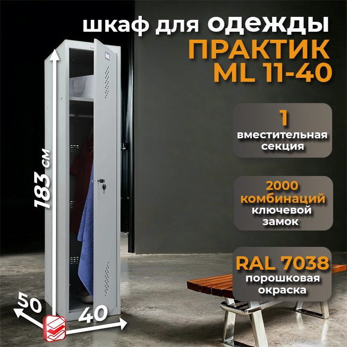 Шкаф ML 11-40 — это надежное, прочное и функциональное решение для хранения одежды, подходящее для использования в различных помещениях: от офисов и складов до учебных заведений и производственных объектов. Он оснащен жестким корпусом и усилен сварной рамой, что обеспечивает отличную устойчивость и долговечность конструкции.