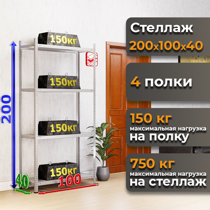 • Нагрузка на стеллаж: 750 кг