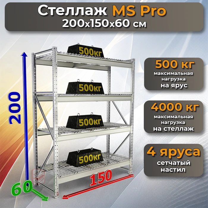 Стеллаж MS Pro 200х150х60 с сетчатыми полками – это идеальный выбор для эффективного хранения товаров и оборудования. Надежность, долговечность и универсальность делают его отличным решением для любого помещения.