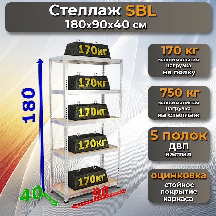 Ищете надежное решение для хранения в гараже, офисе, доме или на складе? Оцинкованный металлический стеллаж SBL 180х90х40 – это прочная и удобная конструкция, выдерживающая до 750 кг общей нагрузки. Система сборки без болтов делает монтаж быстрым и простым.