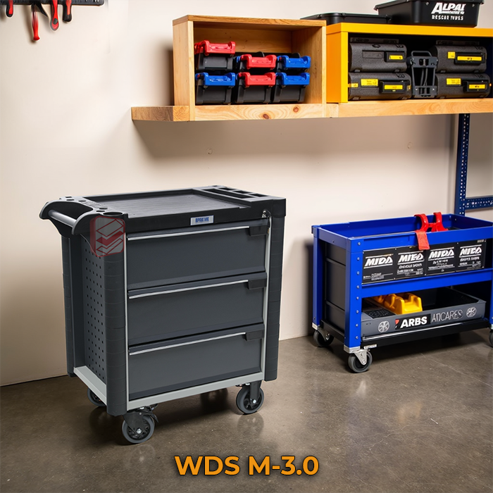 Тележка инструментальная WDS M-3.0 – это прочное, функциональное и современное решение для хранения и упорядочивания инструментов на производственных предприятиях, в автомастерских и других профессиональных пространствах.